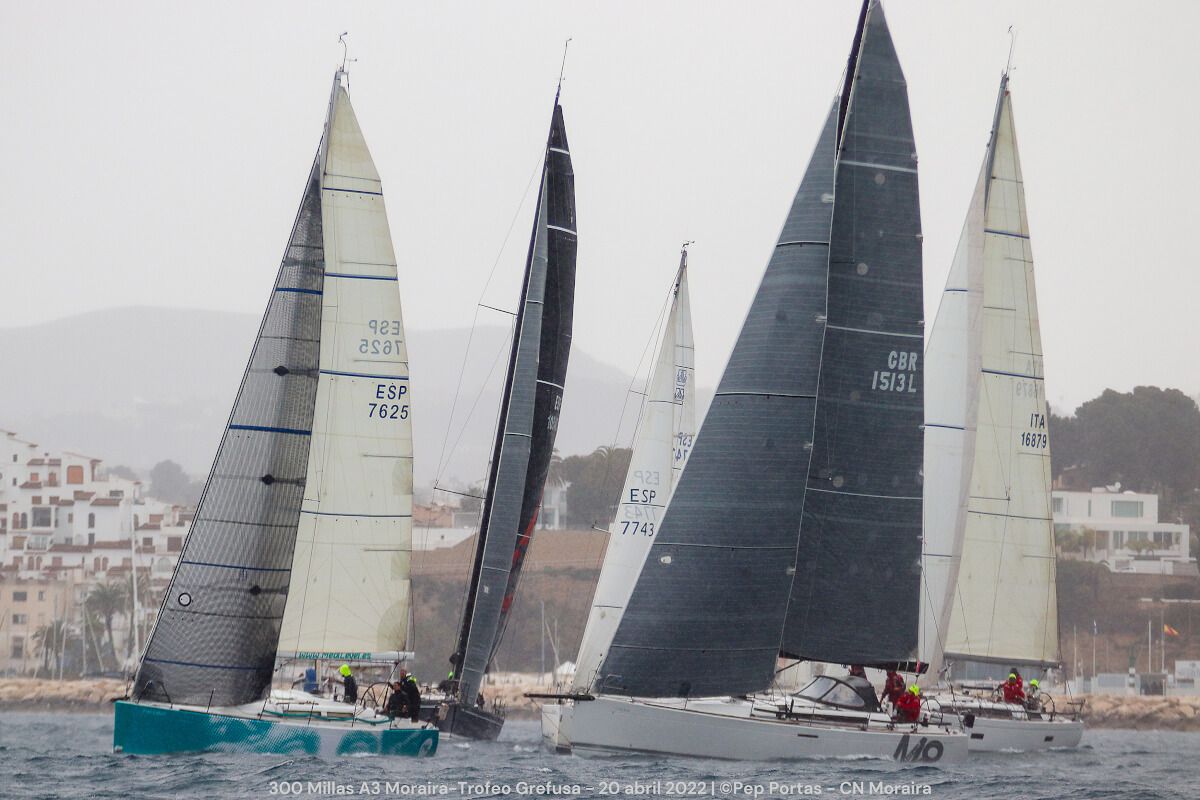 Por el ‘centro’ navegan a la estela de estos tres barcos el calpino Jeffertje (RCN Calpe), un Grand Soleil 46, M8 (RCN Valencia) y más cerca de estos últimos Tanit 4 Medilevel (RCR Alicante) y Baraka Mar (RCN Torrevieja). El resto de la flota se encuentra a bastante distancia de este grupo que encabeza la flota de las 300 Millas A3 Moraira Trofeo Grefusa.