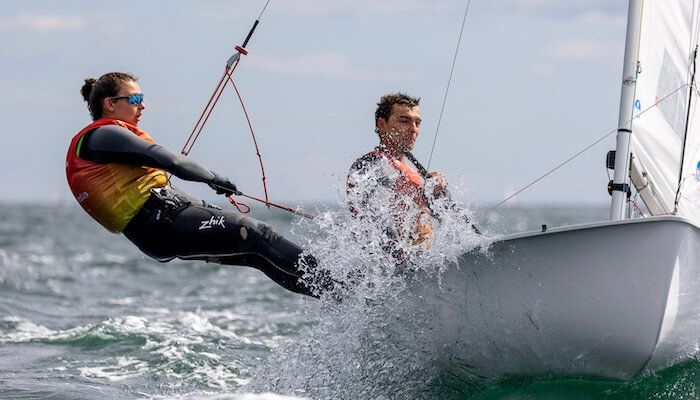 Una de cal y otra de arena para los defensores del título continental y vigentes campeones del mundo, Jordi Xammar (RCN Barcelona) y Marta Cardona (CN Arenal). En la primera manga del día Jordi y Marta firmaron un brillante segundo puesto, quedándose a apenas unos segundos del triunfo. Navegaron con picos de velocidad superiores a los 11 nudos, aunque en la segunda prueba de la jornada terminaron en la 21ª posición, resultado que descartan, lo que les permite no sufrir demasiado ese puesto, por el momento, y ascender dos puestos en la tabla.