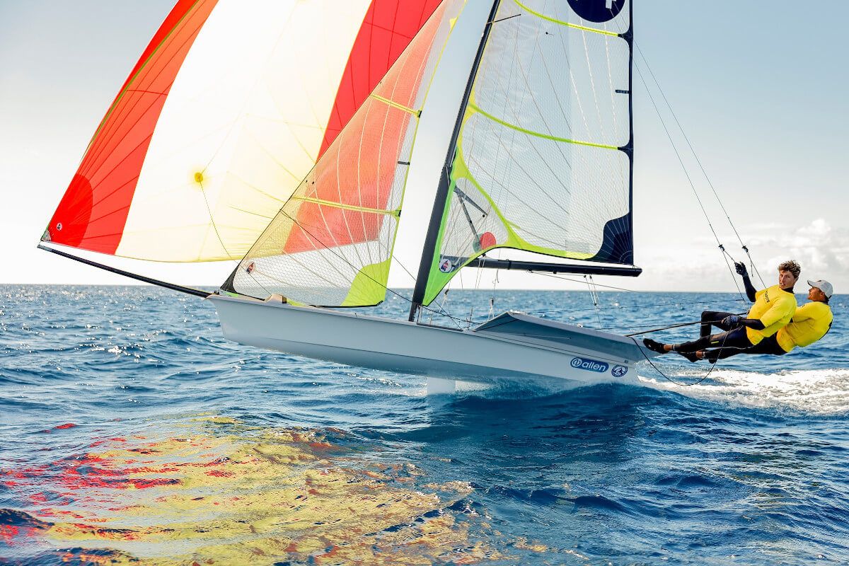 El segundo lugar del podio lo recuperó la pareja alemana formada por Jakob Meggendorfer y Andreas Spranger, tras perderlo ante el canario afincado en Mallorca, Elías Aretz, y su compañero mallorquín, Albert Torres, quienes compiten por el Real Club Náutico de Palma. El dúo español ha perdido posiciones en estas últimas regatas, pero ha conseguido mantenerse en el top 10. “Un placer navegar en tierras canarias, un lujo navegar con calor y viento, y con los mejores equipos del mundo”, comentó el regatista canario. Para su compañero, “estamos contentos y con ganas de trabajar y mejorar”, opinó Torres. Para los alemanes, “Lanzarote es una ubicación increíble, aunque la competición fue dura”.
