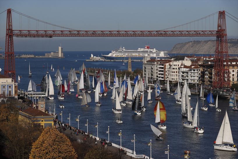 La magnífica estampa que mostraron decenas y decenas de cruceros navegando bajo el puente Colgante, con sus velas de muchos colores desplegadas al viento, fue retratada por muchos aficionados y paseantes que se colocaron en las dos orillas de la Ría, en las que hubo música en directo, talleres y exhibiciones de vela y un gran ambiente. En esta edición tan especial, en el programa de actos, tuvo lugar una regata del Gallo de traineras con la participación de Kaiku, Zierbena, Lekittarra y Ondarroa en el campo de regatas de Portugalete y Santurtzi en un formato de contrarreloj por parejas. La Lekittarra pasará a la historia como ganadora de esta Bandera del Gallo.