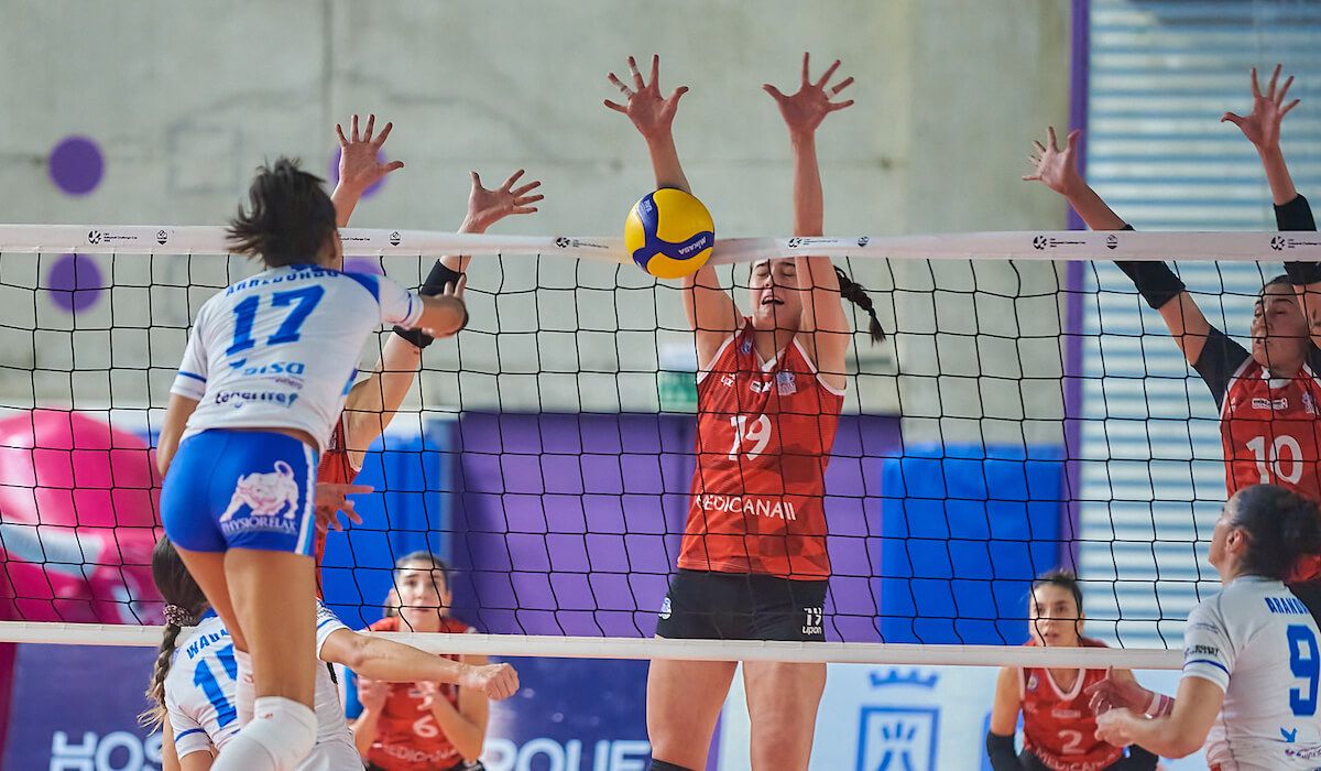 Lejos de caerse, el Tenerife La Laguna supo mantenerse en el partido. Contra viento y marea. Y es que también fue capaz de recortar una desventaja inicial para irse hasta el 6-7. Por las puntas, Lisa Jean Pierre y Paola Martínez supieron rematar sin que los bloqueos le negarán los puntos.