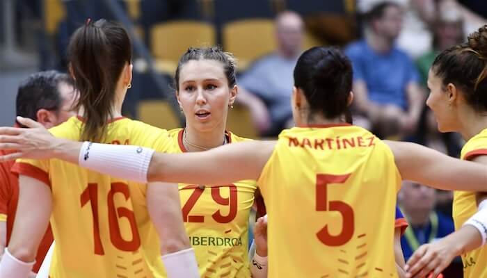 España: Martínez (14), Varela (11), Llabrés (Líbero), Segura (6), Jiménez (3), Lázaro (3), Schlegel (13). También jugaron: Hernández (1), García (-), Aranda (-), Carpintero (4), Camino (6).