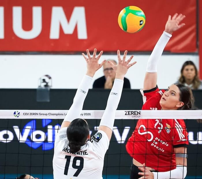 Con Aranda al saque, los canarias hicieron daño, con dos puntos directos de la granadina incluidos, y ampliaron su ventaja hasta el 12-16 para sorprender a las campeonas de Portugal y posteriormente poner tierra de por medio con una acertadísima Bednarek (16-22). Kyra Holt comandó una tímida reacción lusa que Cara McKenzie se encargó de neutralizar con un remate a la pata por zona 2 (21-25).