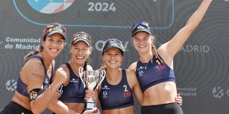 Los dúos formados por Liliana Fernández Steiner-Paula Soria y Daniela Álvarez y Tania Moreno, vencieron la fase de grupos de la Nations Cup disputada en Madrid y lucharán del 13 al 16 de junio en Jurmala (Letonia) por el último billete a los Juegos Olímpicos y por el triunfo en la competición. Las españolas no dieron opción a las representantes de Noruega en una final controlada en todo momento en la arena del Parque Deportivo Puerta de Hierro.