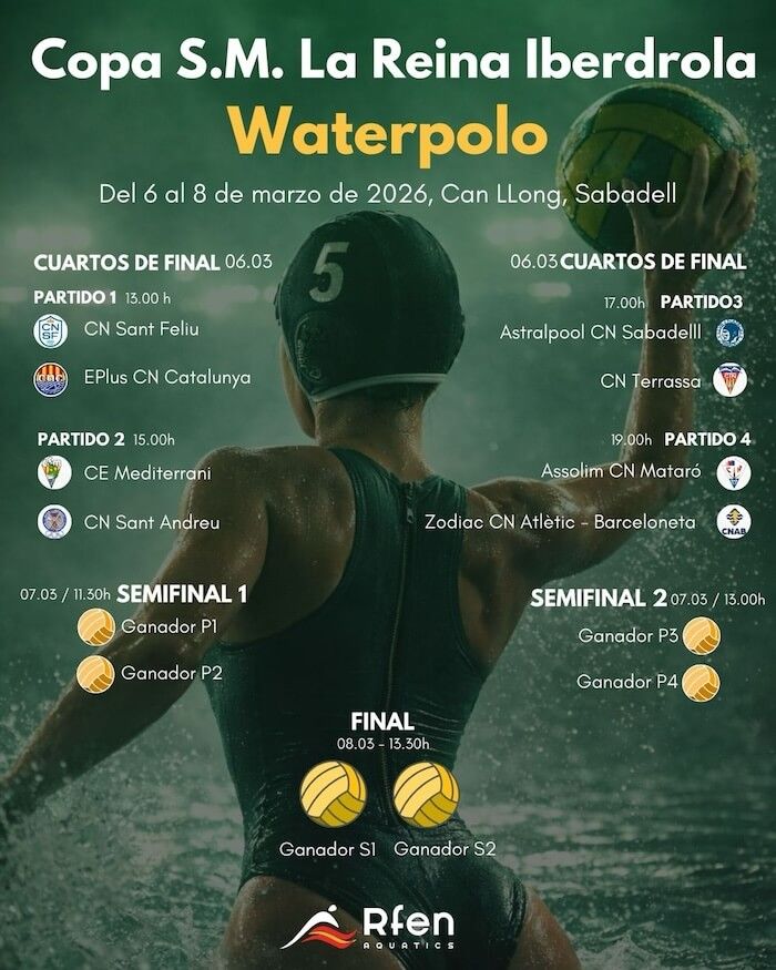 EFE.- El duelo entre el tercer y el quinto clasificado de la División de Honor, el Assolim Mataró y el Zodiac Atlètic Barceloneta, junto al derbi vallesano entre el Astralpool Sabadell y el CN Terrassa, marcarán los cuartos de final de la Copa de la Reina, que se disputará del 6 al 8 de marzo en la piscina de Can Llong (Sabadell).